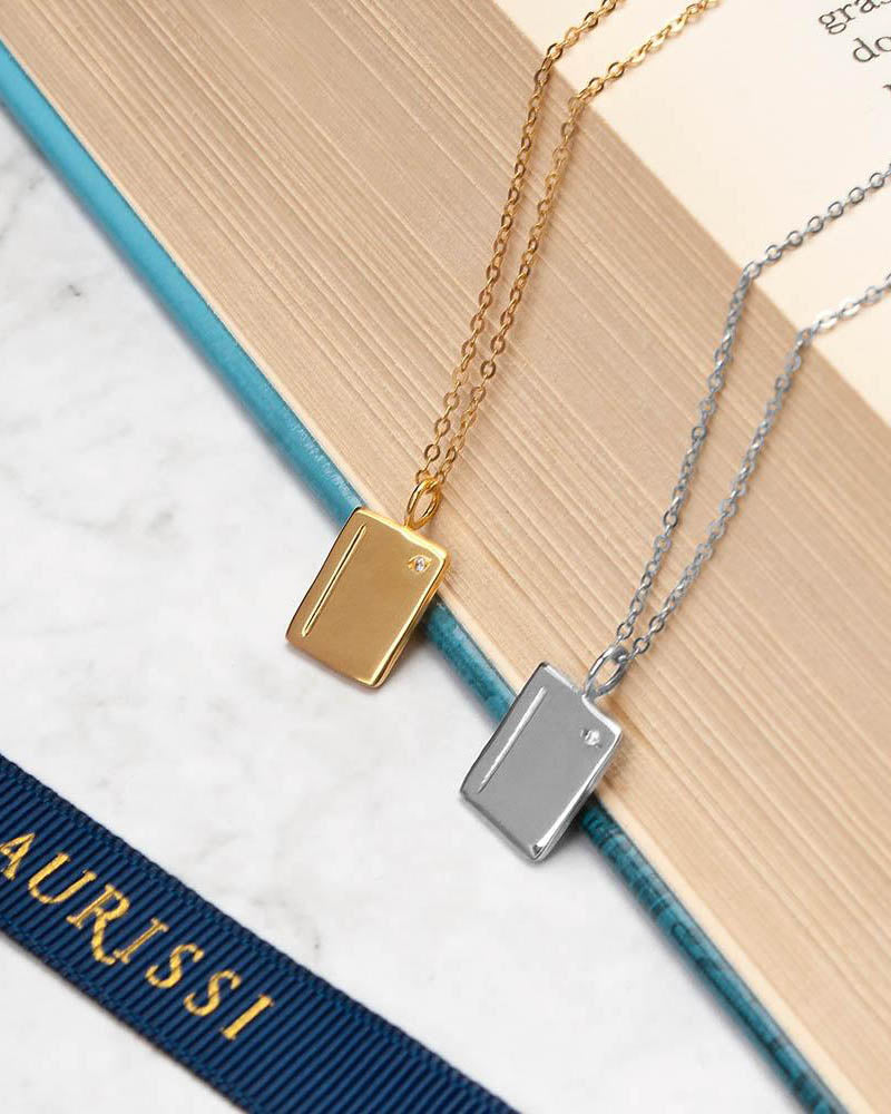 Este precioso collar simboliza el libro de tu vida. Te recordará quién eres y que solo está en tu mano escribir quién quieres ser.